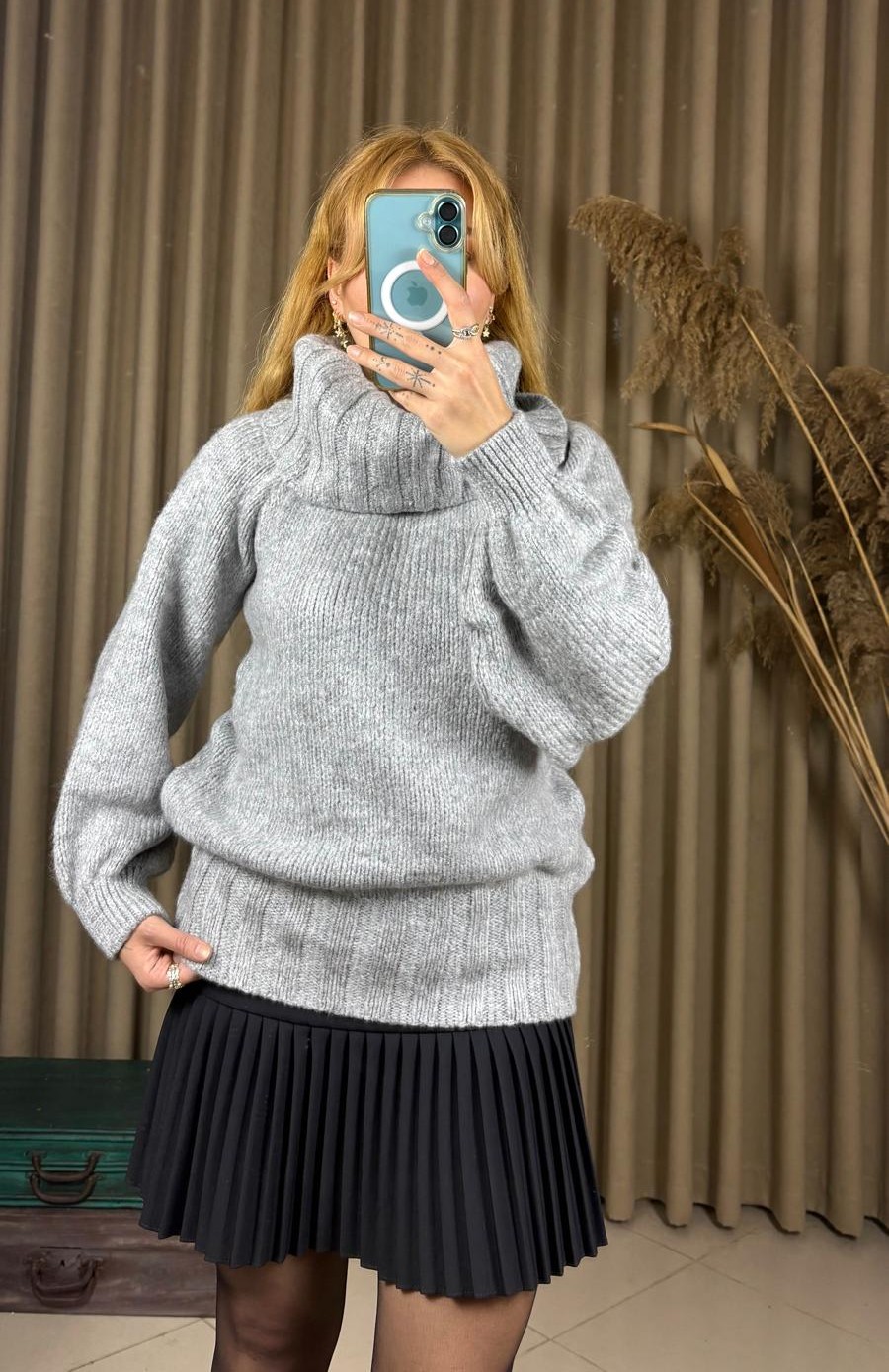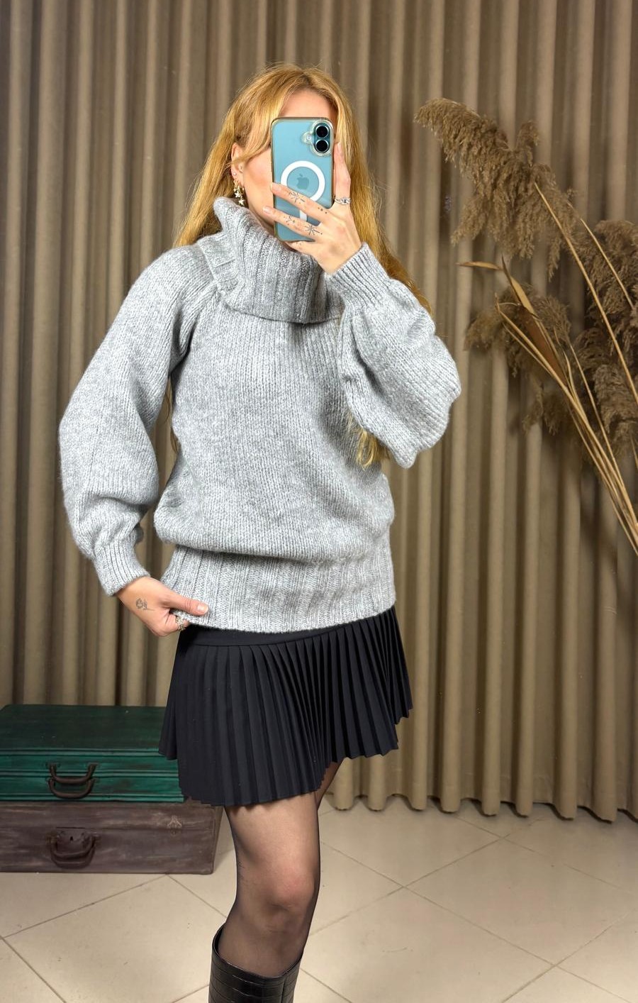 Kış sezonunun vazgeçilmezi olacak balıkçı yaka balon kol fitilli açık gri kazak, sade şıklığıyla stilinizi ön plana çıkarıyor. Fitilli dokusu vücudu zarifçe sararken, balon kol detayı modern ve feminen bir görünüm kazandırır. Yumuşak dokulu triko kumaşı sayesinde hem sıcak tutar hem de gün boyu konfor sağlar. Model: Balıkçı yaka, balon kol, fitilli dokulu Renk: Füme – zamansız ve her kombinle uyumlu Kumaş: Esnek, yumuşak triko Tarz: Günlük, ofis ve şehir şıklığı için ideal Kalıp: Rahat ve esnek yapı. Standart beden. Bu kazak; jean, etek veya kumaş pantolonlarla kolayca kombinlenebilir. Topuklu botlar ya da spor ayakkabılarla tamamlayarak her ortama uygun bir stil oluşturabilirsiniz. 36,38,40,42,44 bedene kadar uyumludur. Manken boy: 172cm kilo:62 kg Mankende standart beden kullanılmıştır.