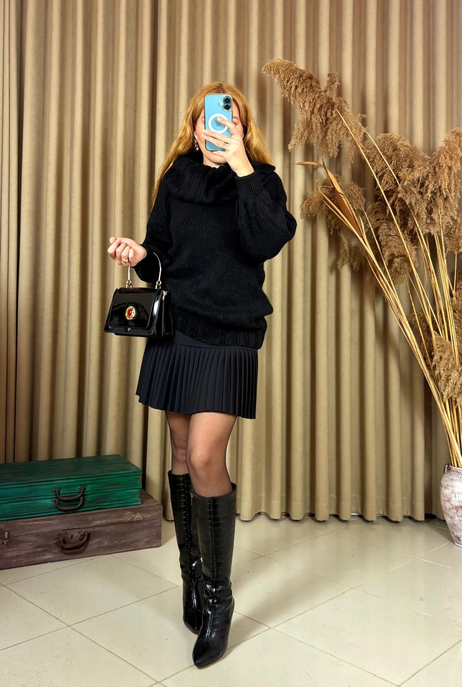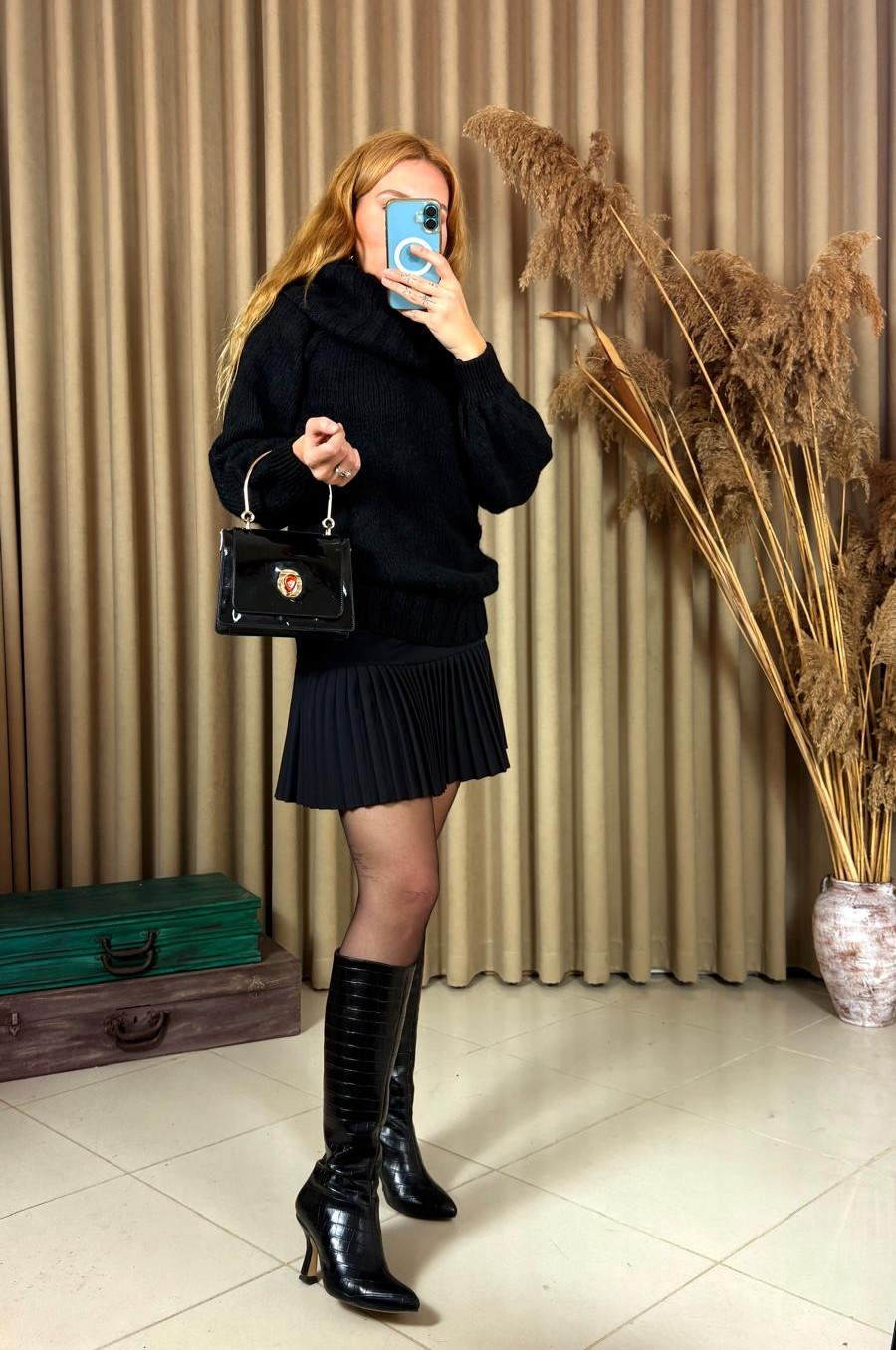 Kış sezonunun vazgeçilmezi olacak balıkçı yaka balon kol fitilli siyah kazak, sade şıklığıyla stilinizi ön plana çıkarıyor. Fitilli dokusu vücudu zarifçe sararken, balon kol detayı modern ve feminen bir görünüm kazandırır. Yumuşak dokulu triko kumaşı sayesinde hem sıcak tutar hem de gün boyu konfor sağlar.