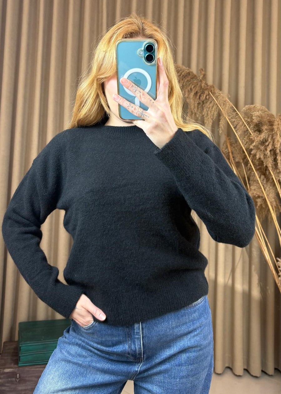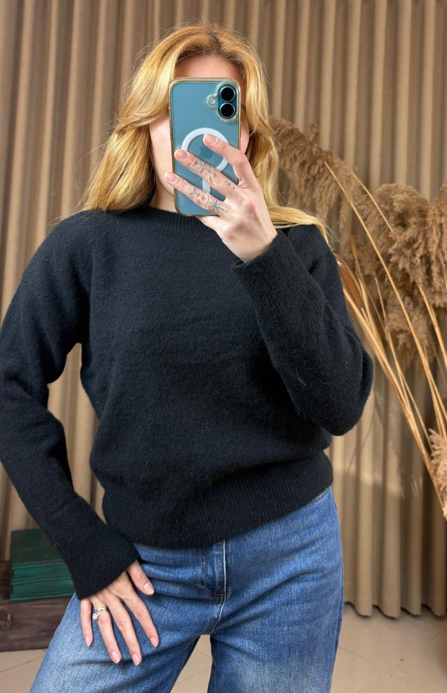 Zamansız şıklığın en sade hali! Bisiklet yaka yumuşak dokulu basic triko kazak, siyah rengin asaletini konforlu dokusuyla birleştiriyor. Yumuşak ve esnek triko kumaşı, gün boyu rahatlık sağlarken sade tasarımı sayesinde her tarzla kolayca kombinlenebilir. Dolabınızda hem klasik hem modern stiller için vazgeçilmez bir parça olacak.