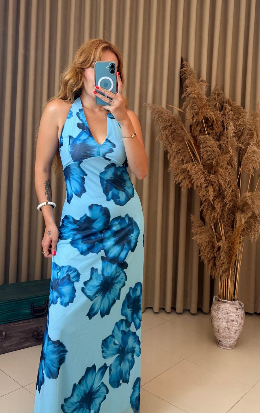 Şıklığı ve zarafeti bir arada sunan boyundan bağlamalı çiçek desenli mavi elbise, özel günlerinizde dikkatleri üzerinize çekecek. %97 polyester ve %3 likra karışımından üretilmiş olan bu elbise, vücudu sararak mükemmel bir fit sağlarken, esnek yapısı sayesinde rahat bir kullanım sunar. Astarlı tasarımı ile hem şıklık hem de rahatlık bir arada. Boyundan bağlama detayıyla zarif bir siluet oluştururken, çiçek desenleriyle her ortamda göz alıcı bir görünüm elde edebilirsiniz. Modelimiz 1.72 cm boyunda, 62 kg ağırlığında olup, M (Medium) beden elbise giymektedir.