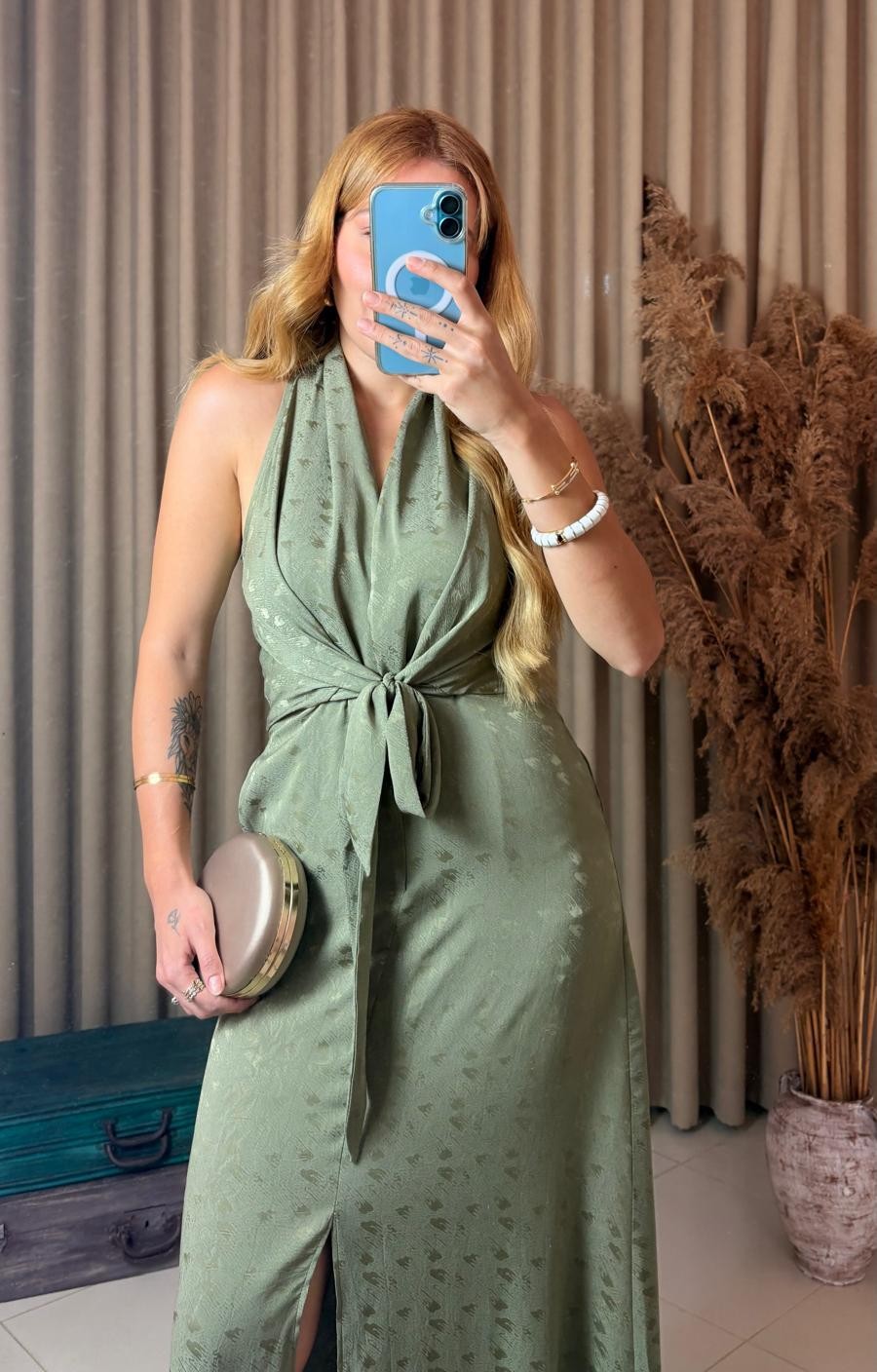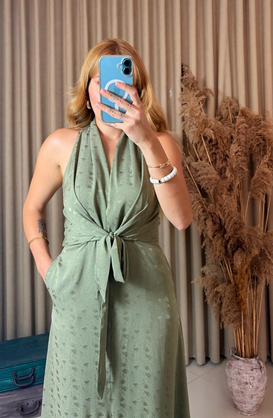 Ön bağlamalı tasarım: Belinizi vurgulayarak feminen bir görünüm kazandırır.