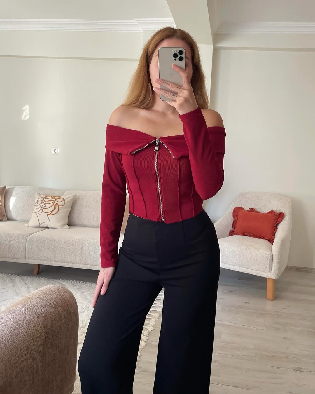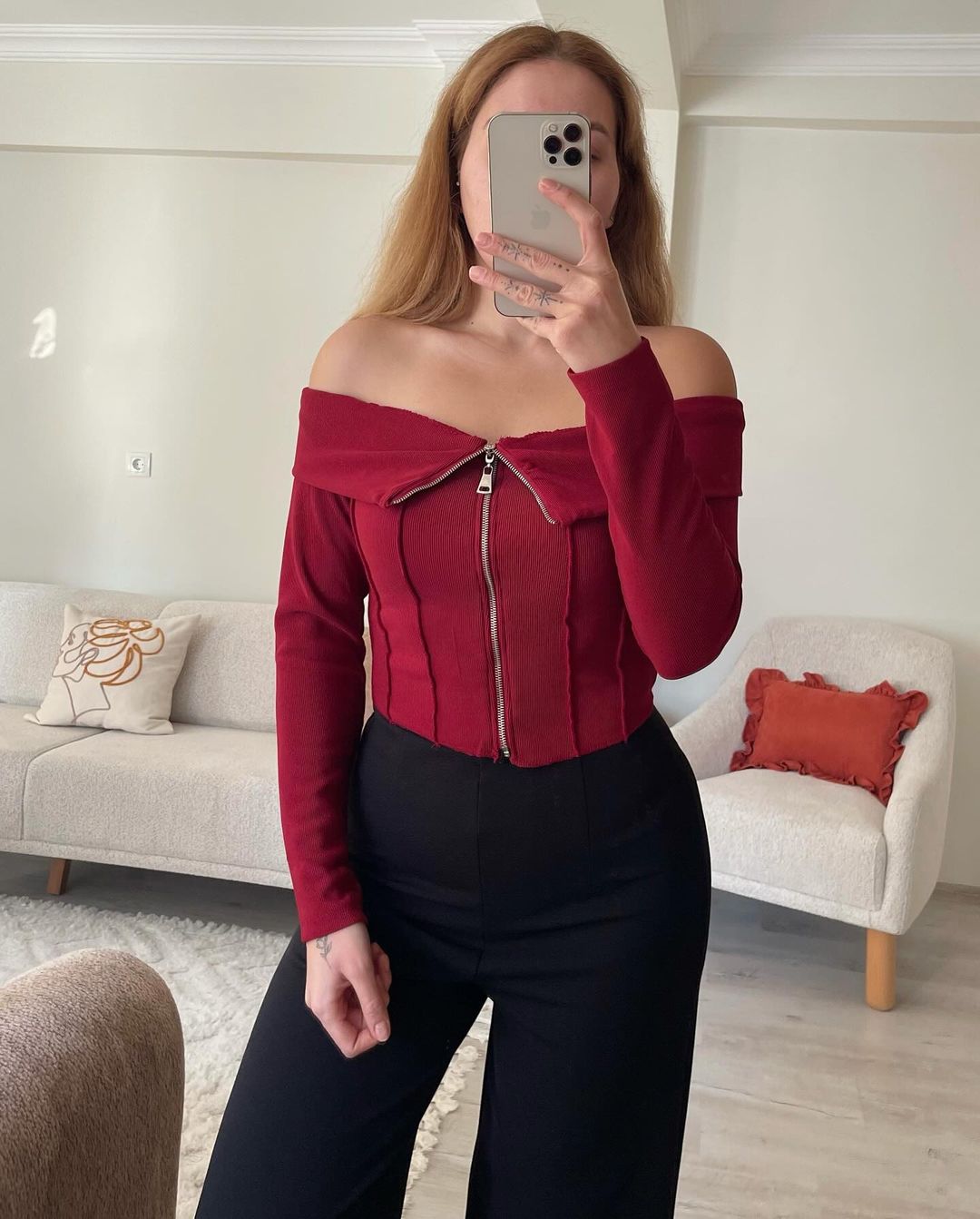 Madonna Yaka Fermuarlı Bordo Bluz