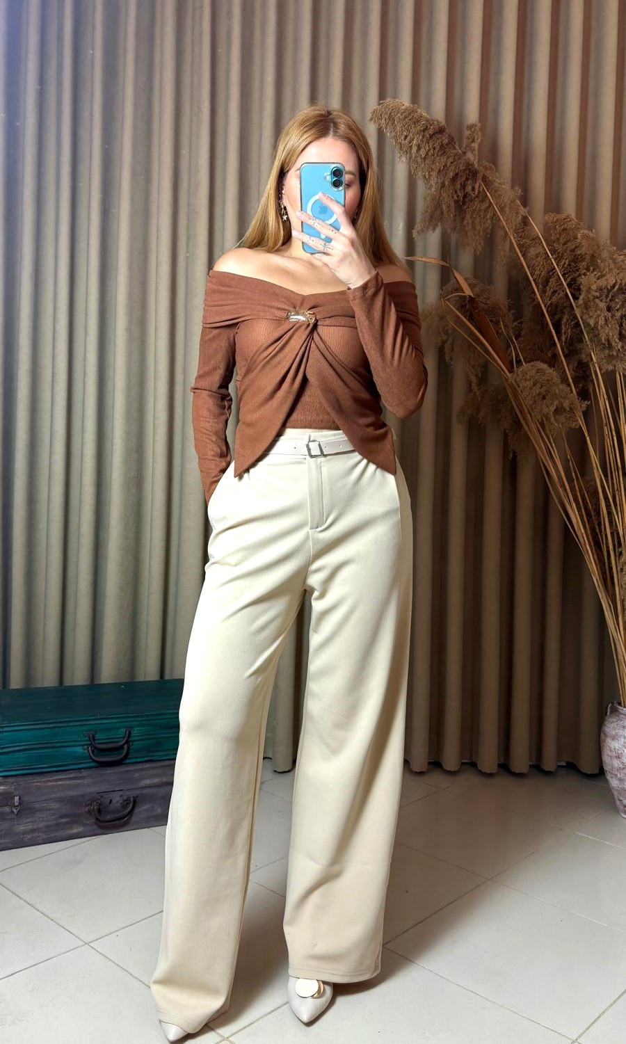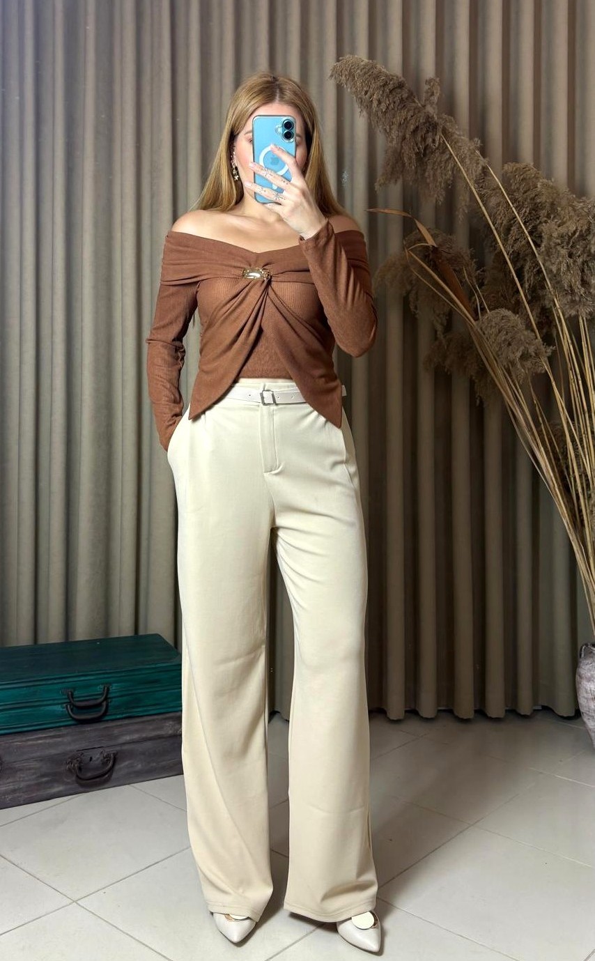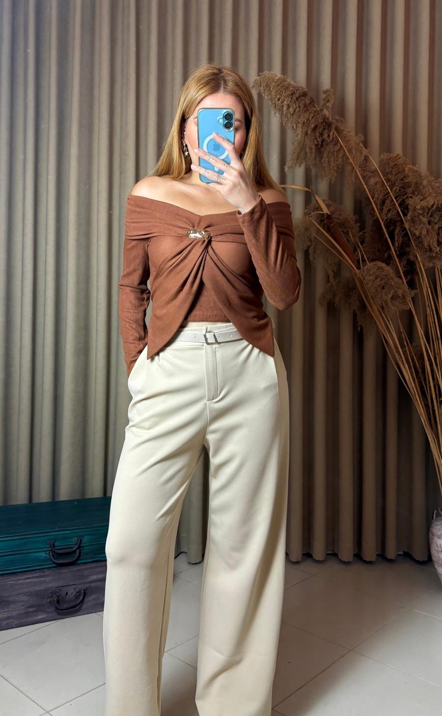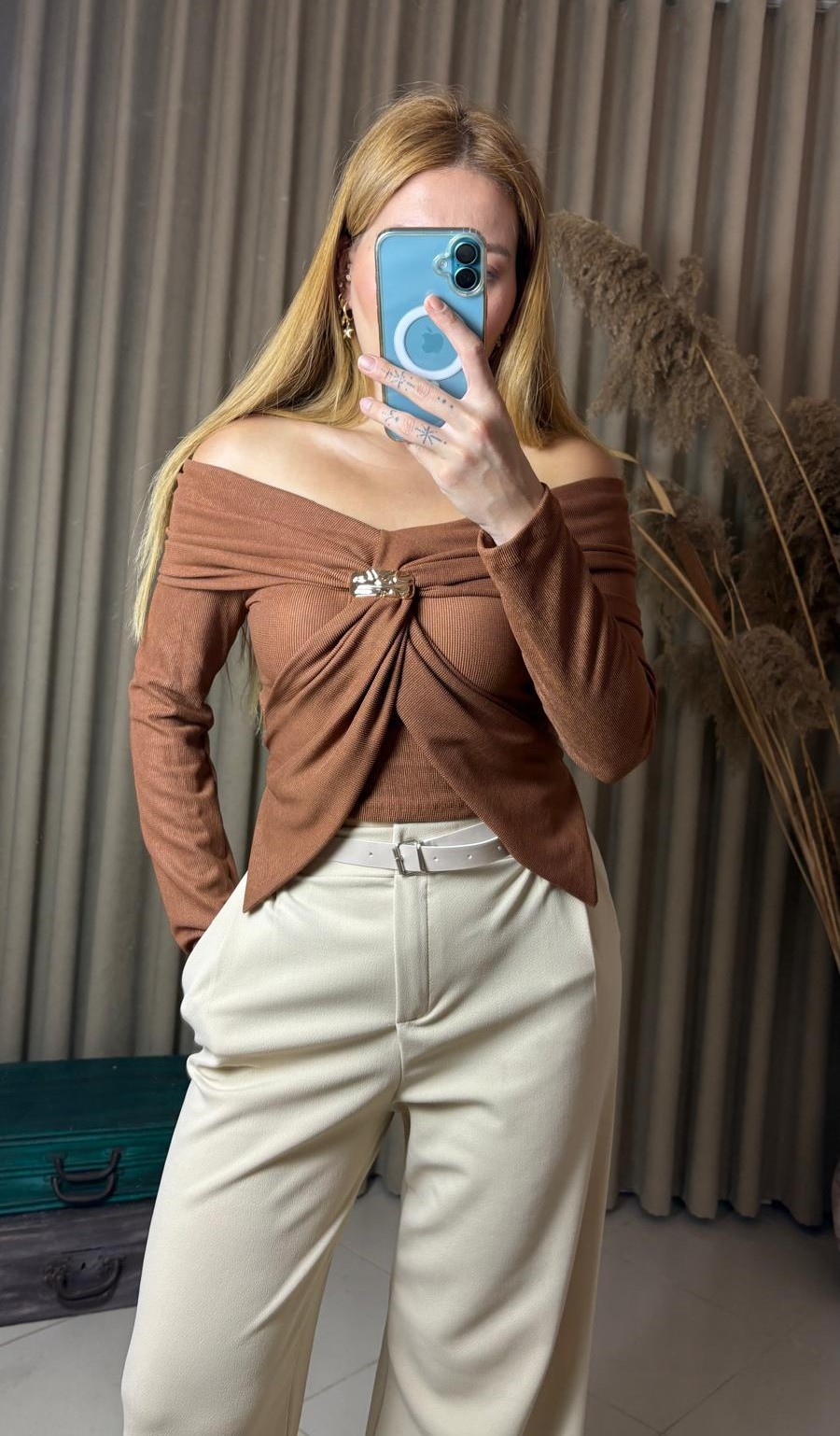 Şıklığı ve modern tasarımı bir araya getiren Madonna yaka gold aksesuar detaylı bluz, zarif görünüm arayan kadınların favorisi olmaya aday. Özel günlerde, davetlerde veya günlük kombinlerinizde rahatlıkla kullanabileceğiniz bu bluz, feminen çizgisiyle tarzınızı ön plana çıkarır.