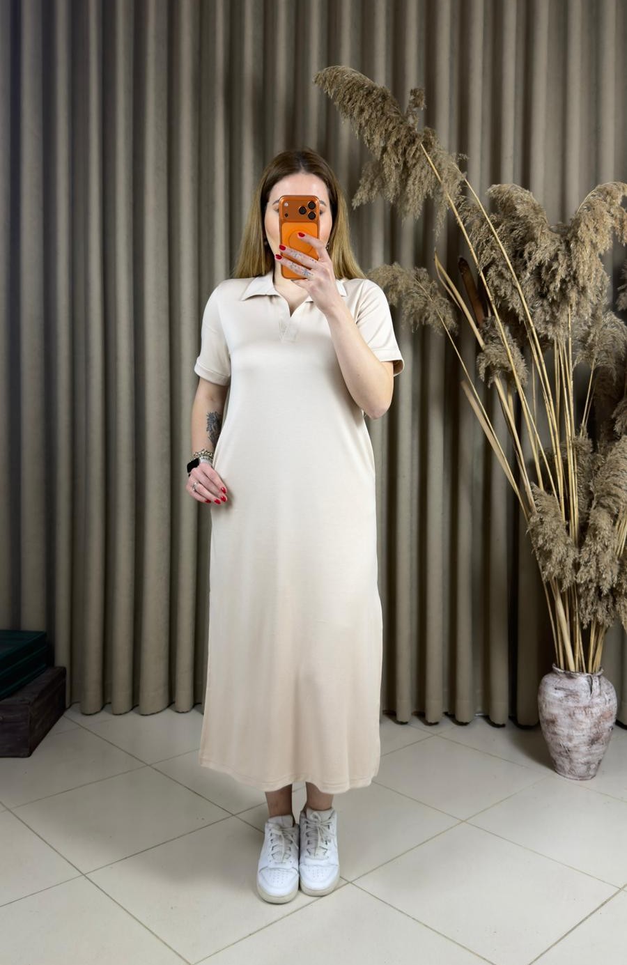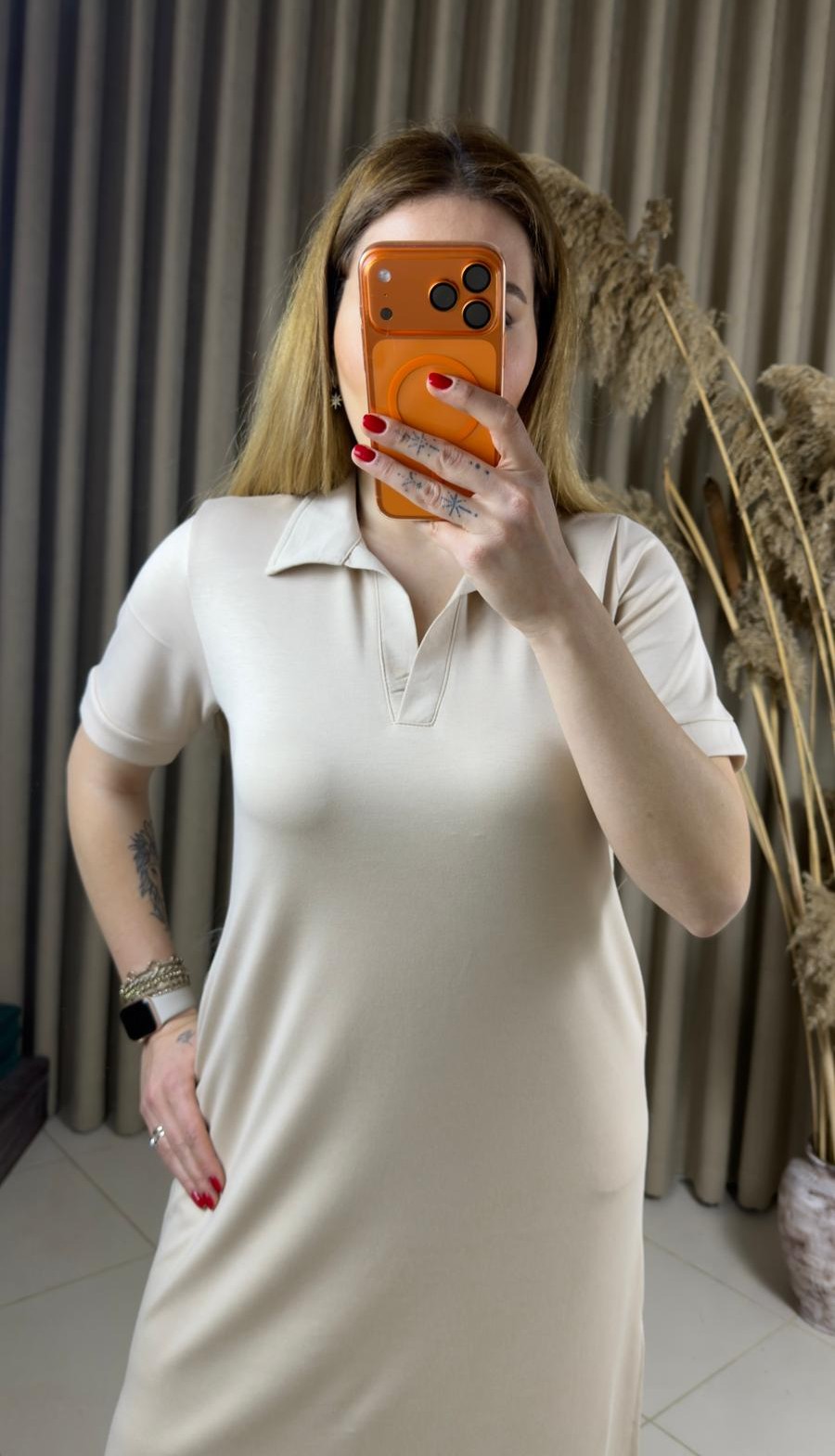 Polo Yaka Modal Elbise Bej