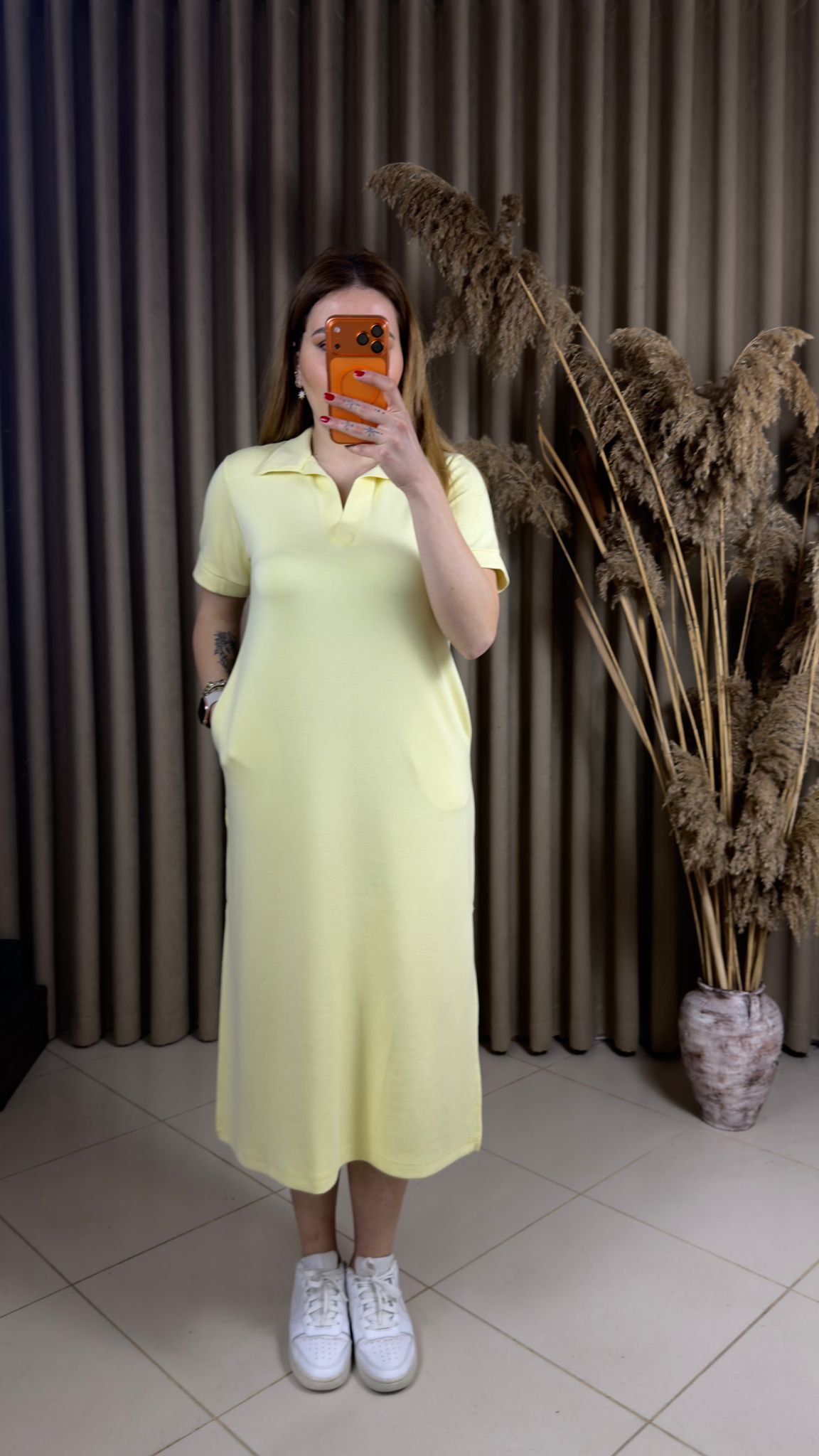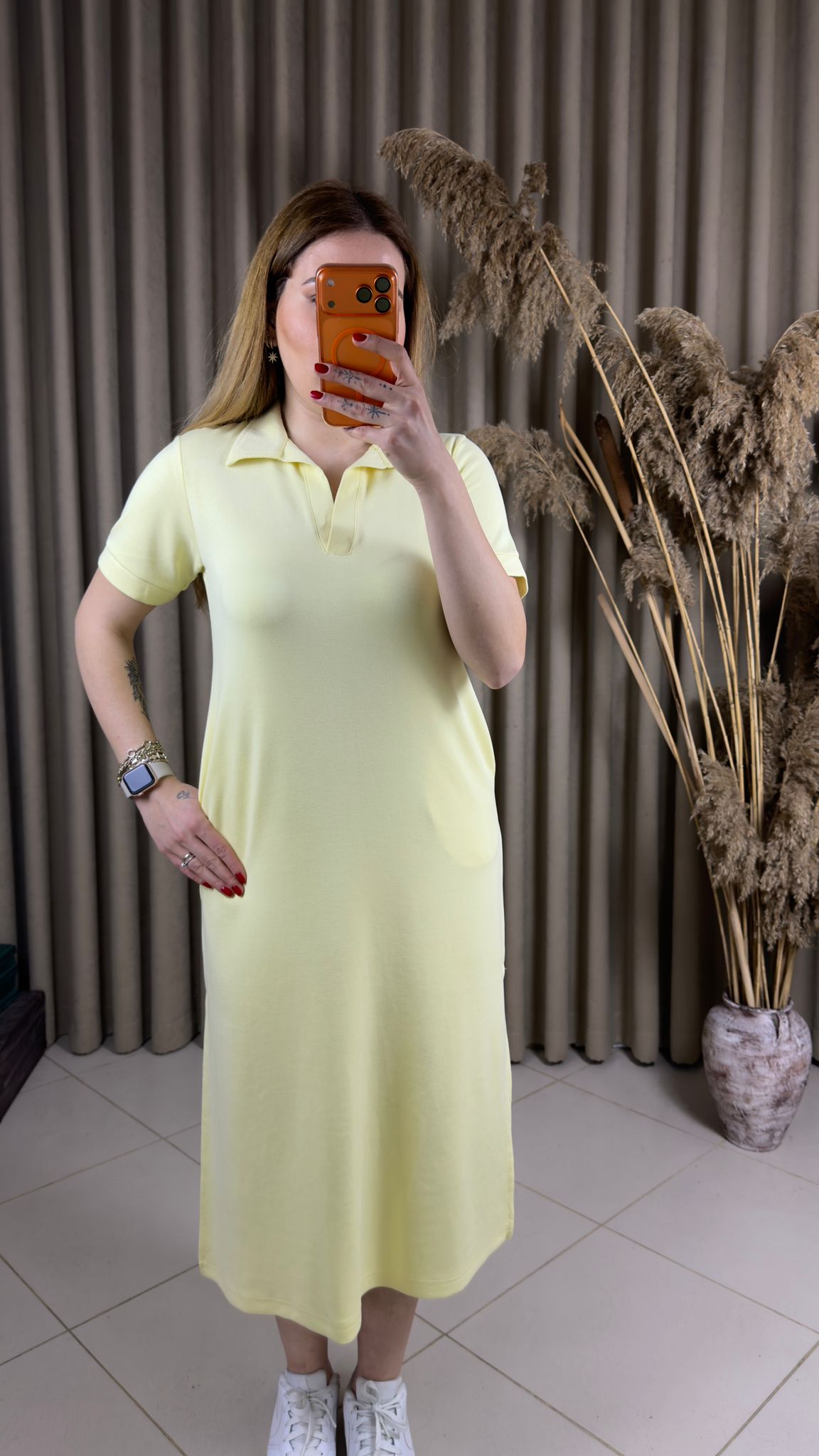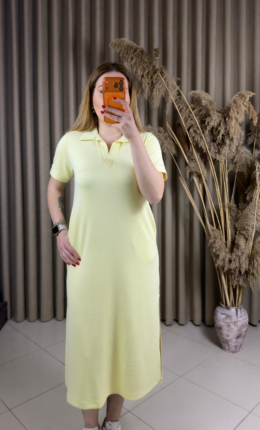 Polo Yaka Modal Elbise Sarı