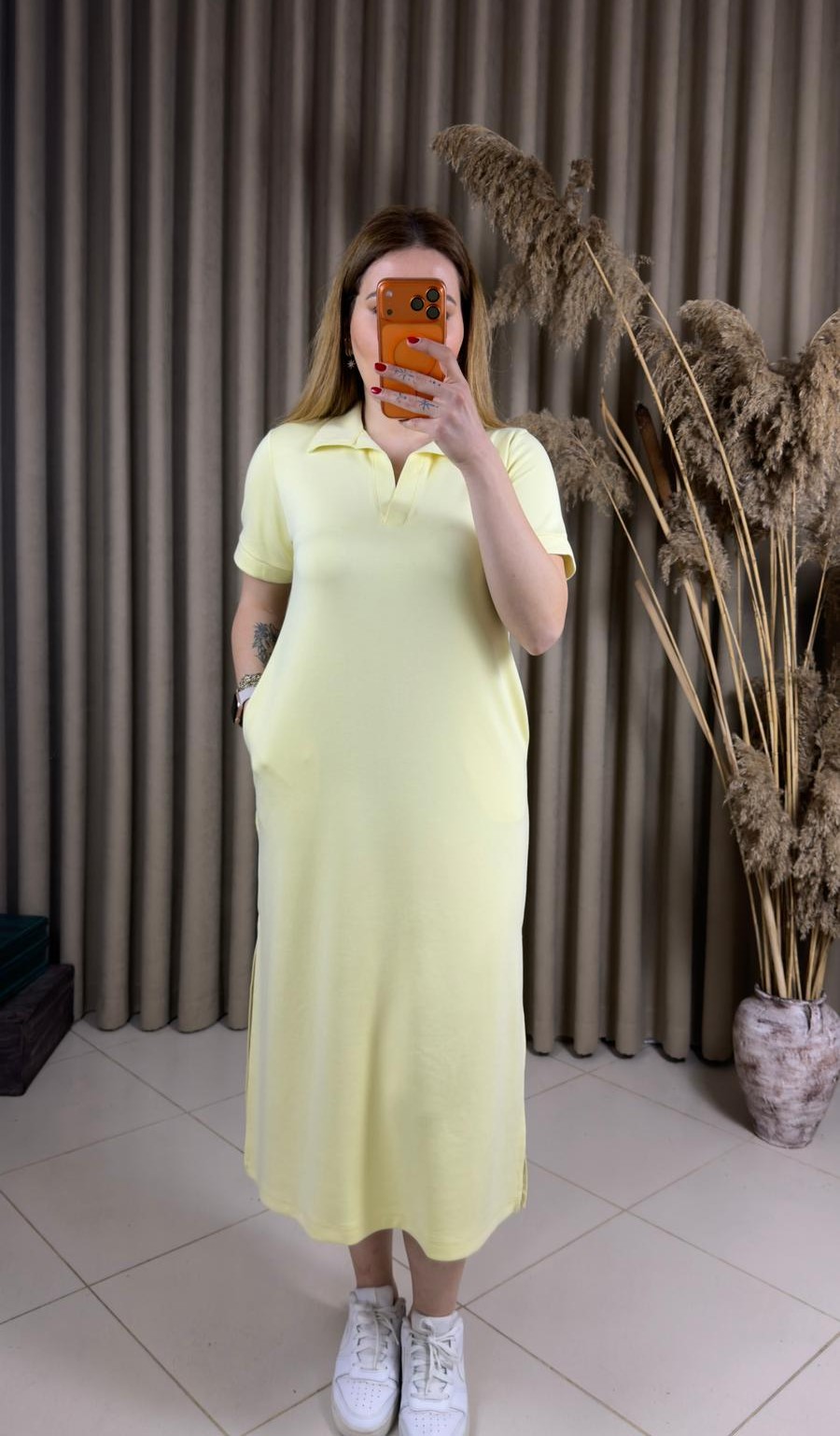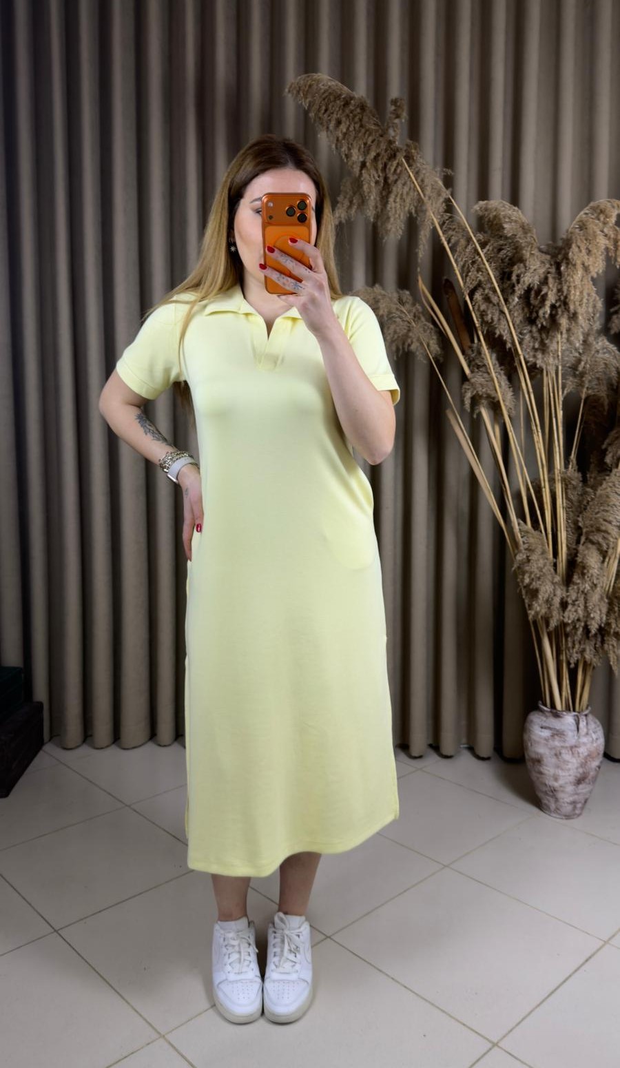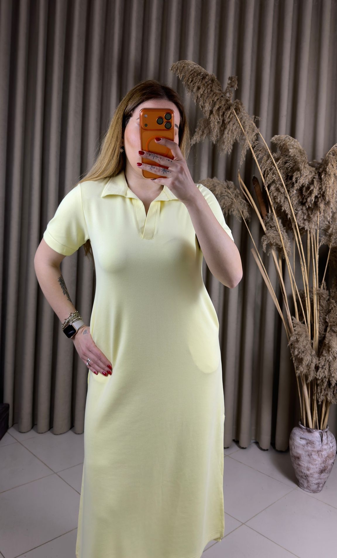 Polo Yaka Modal Elbise Sarı