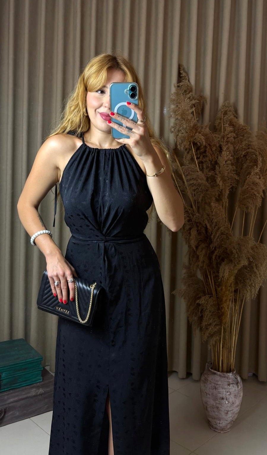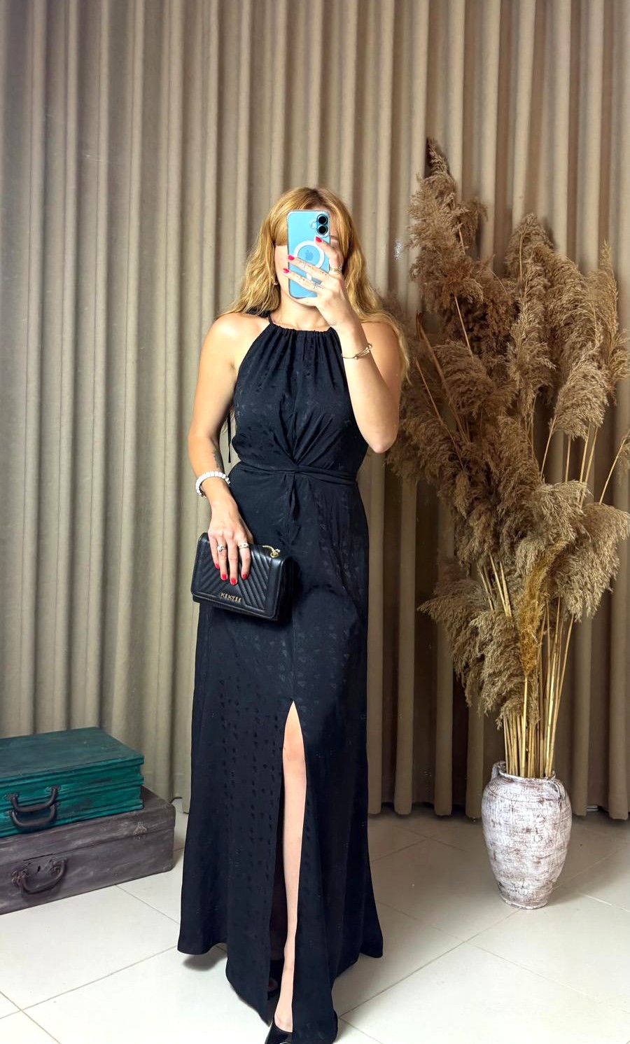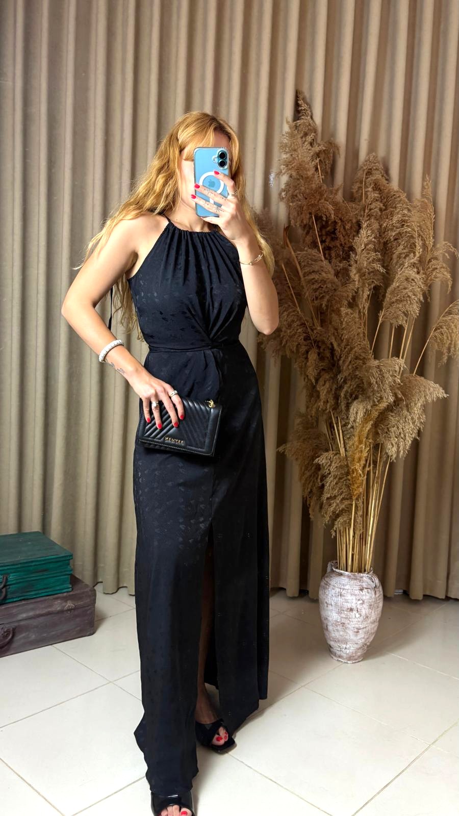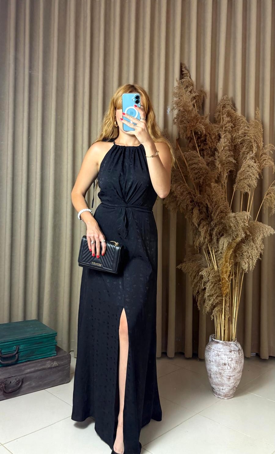 Siyahın asaletini, zarif detaylarla buluşturan bu bel bağlamalı yırtmaçlı elbise, günlük hayatta ve özel davetlerde stilinizi ön plana çıkarır.