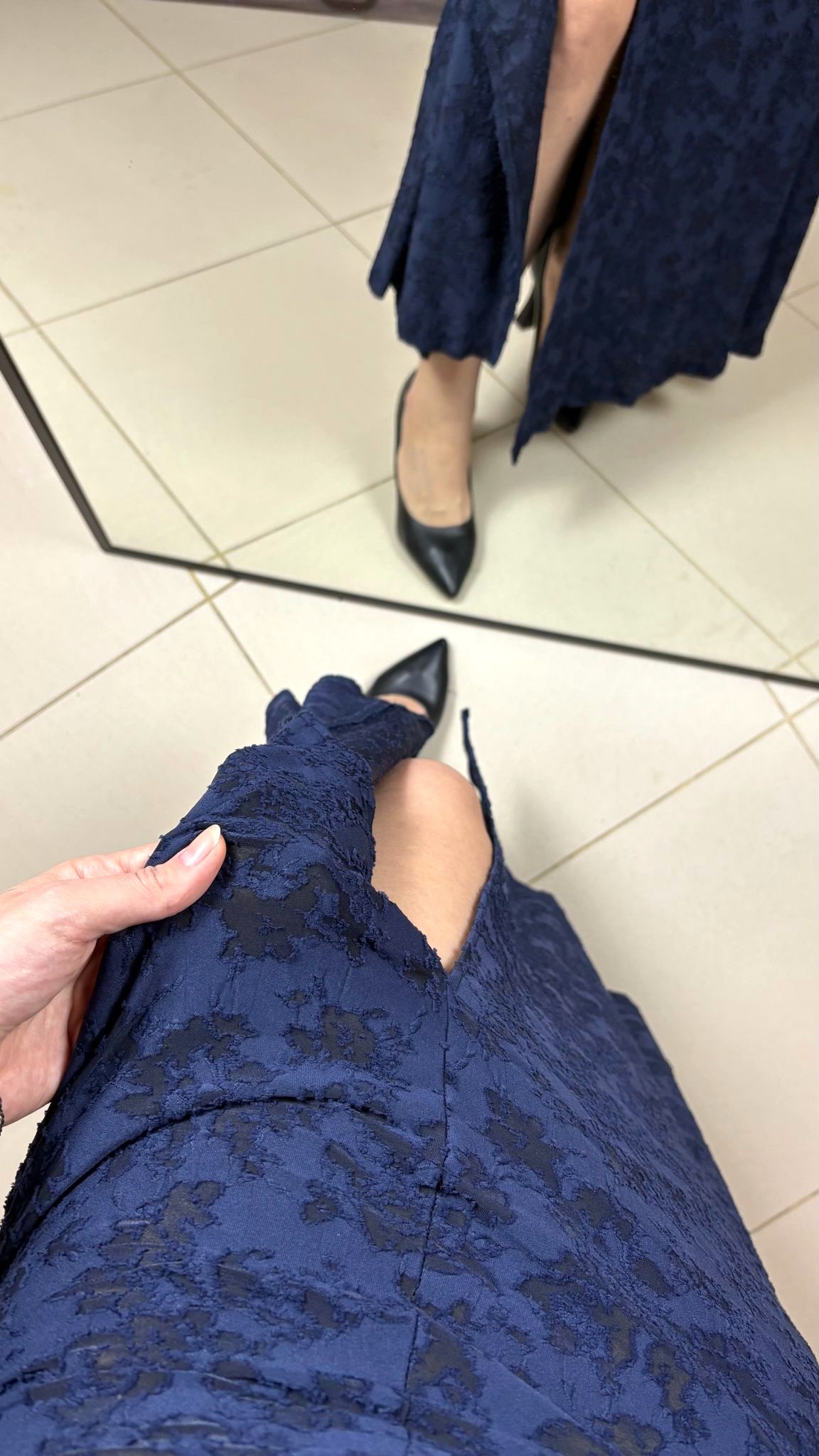 Lacivert tonunun asaleti ile özel günler, davetler, nişan, mezuniyet ve akşam etkinlikleri için ideal bir seçimdir. Akıcı kumaşı vücudu kusursuzca sarar ve rahat bir kullanım sunar.
