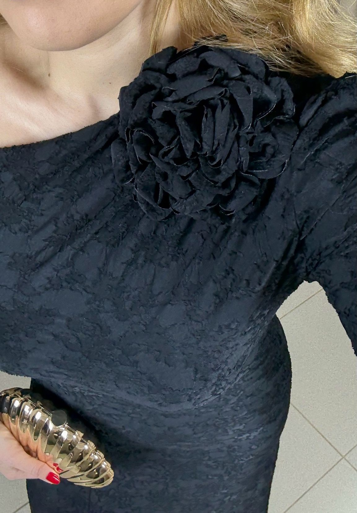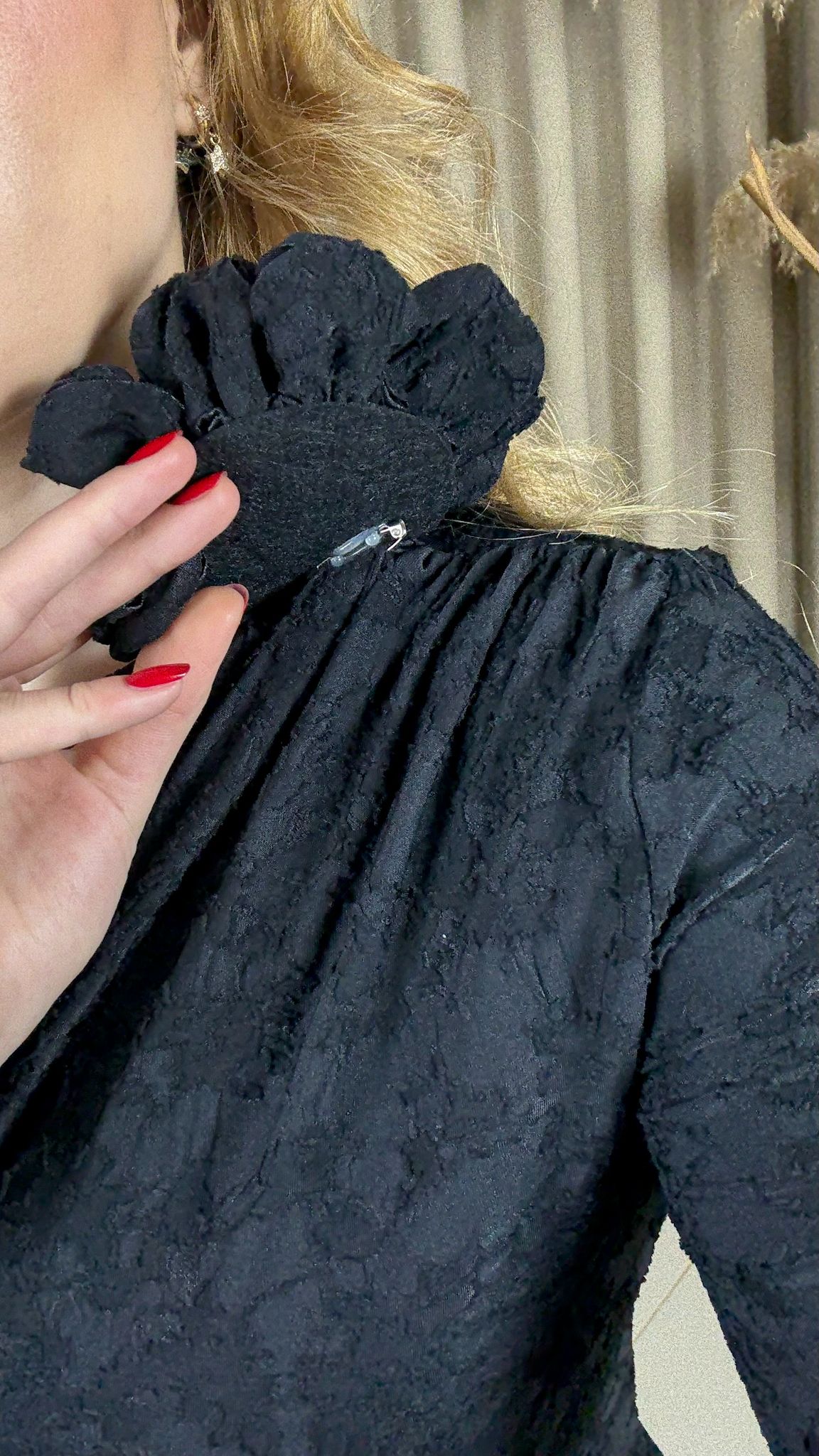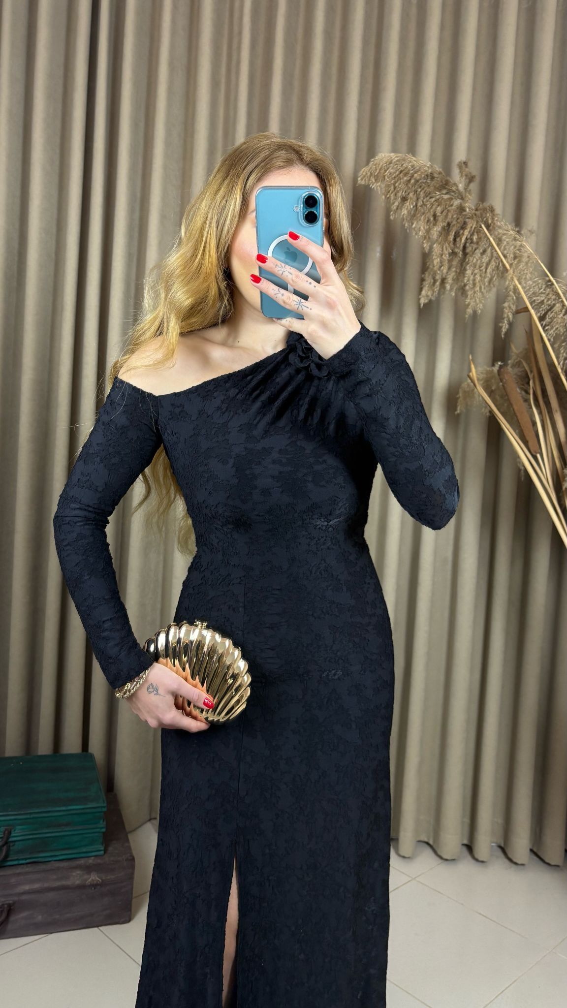 Zamansız şıklığın en güçlü temsilcilerinden olan tek omuz çiçek aksesuarlı siyah elbise, modern tasarımı ve zarif detaylarıyla özel davetlerin vazgeçilmezi olmaya aday. Tek omuz formu feminen bir duruş yaratırken, omuzda yer alan çiçek aksesuarı elbiseye sofistike bir hava katar.