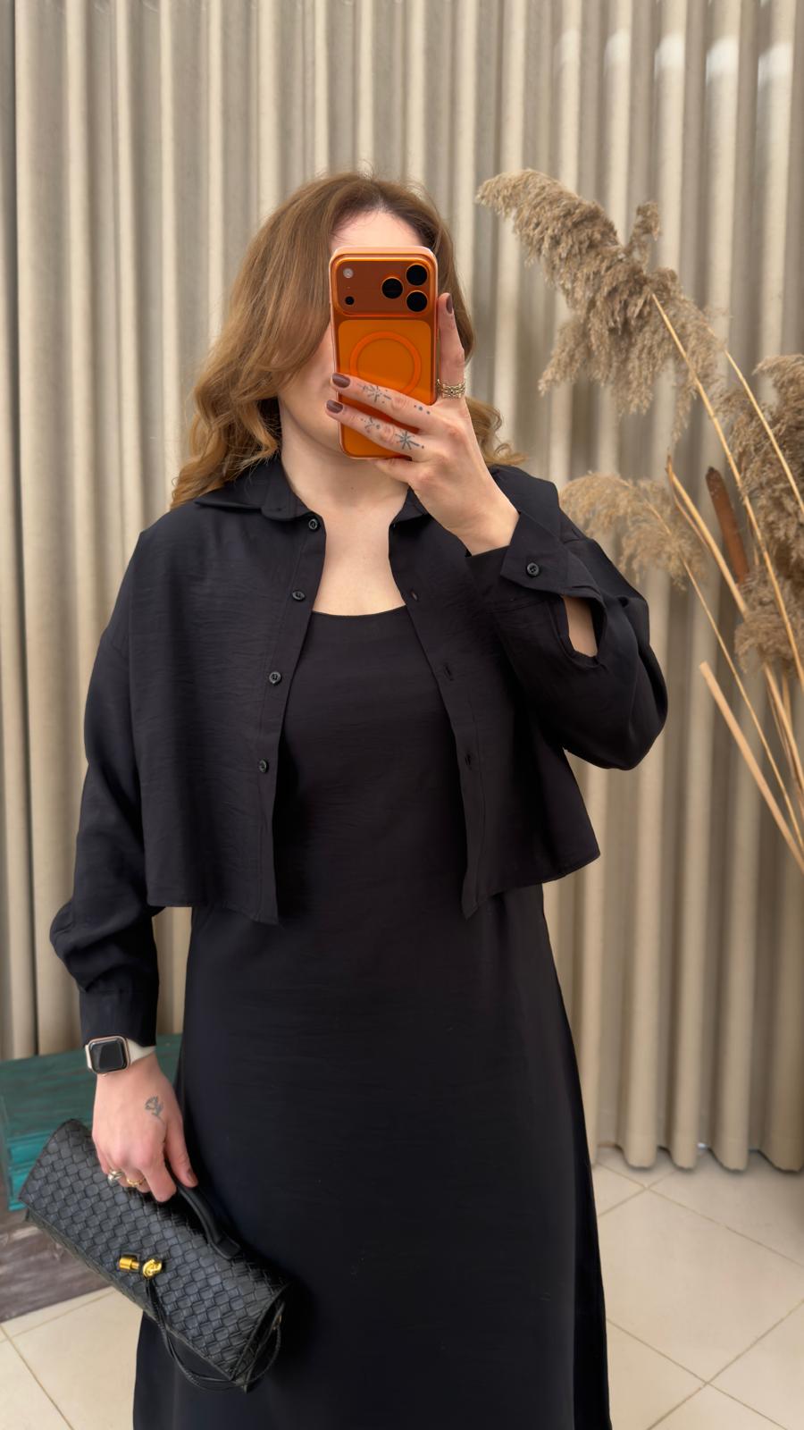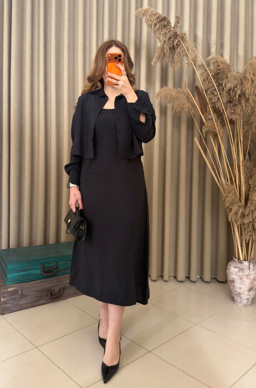 Tensel Kumaş Gömlekli Elbise Takım Siyah