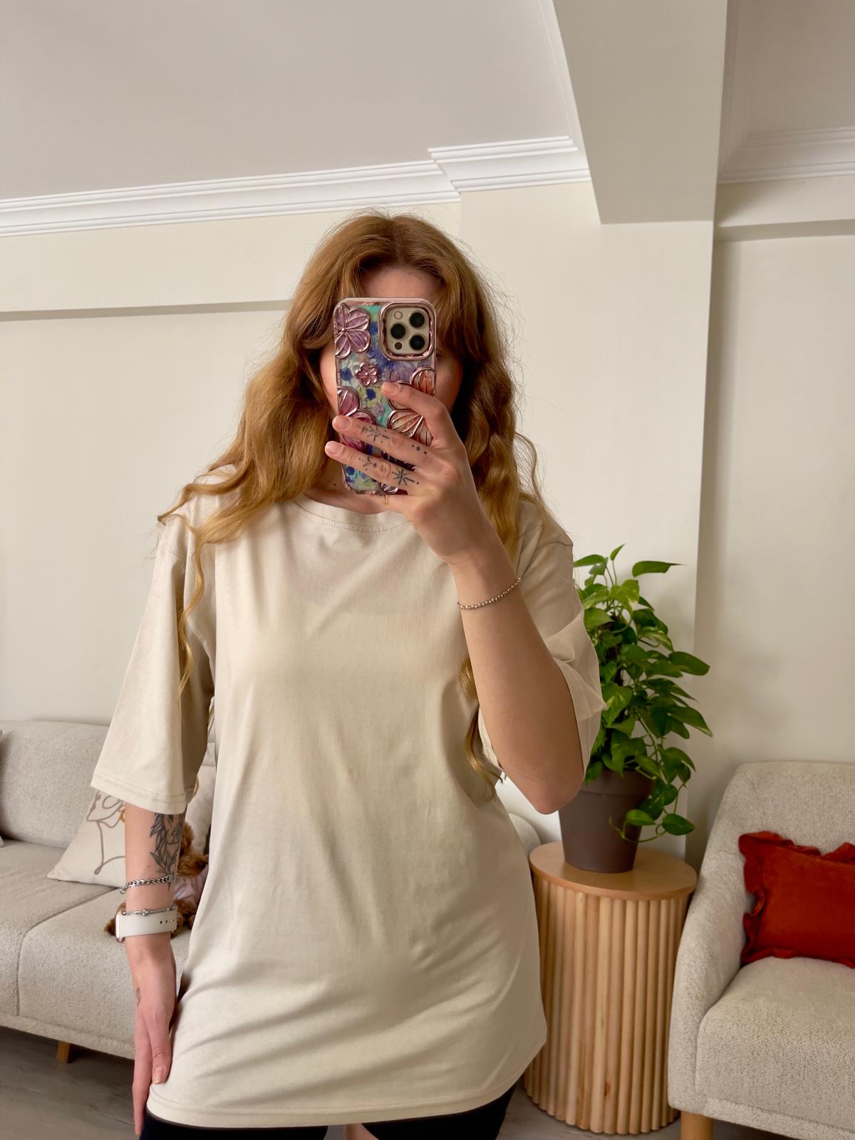 Zra Marka Oversize Bej T-shirt